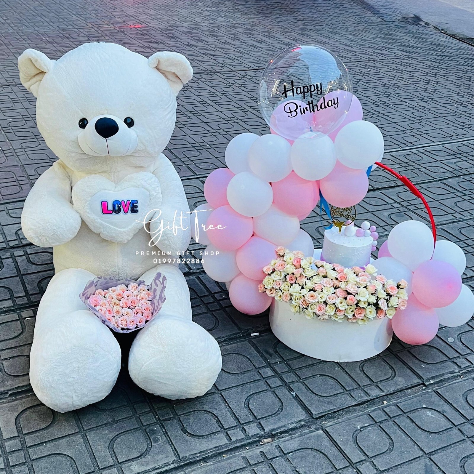 5.5ft Teddy & Small Flower Bouquet N Cake Hamper