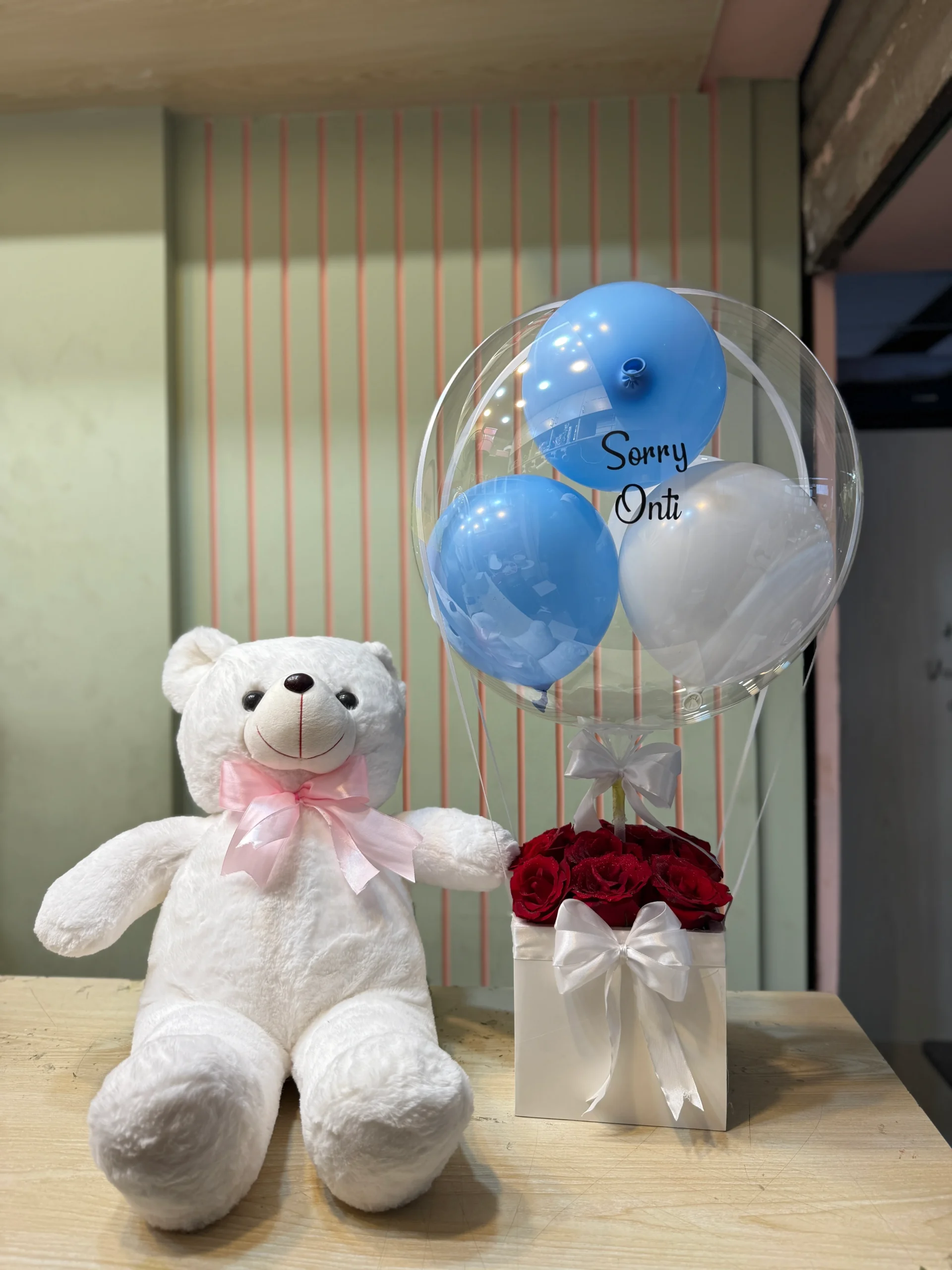 A soft, heart-melting apology gift with a cuddly teddy and fresh red roses. Perfect for saying “I’m sorry” with warmth, love, and sincerity.