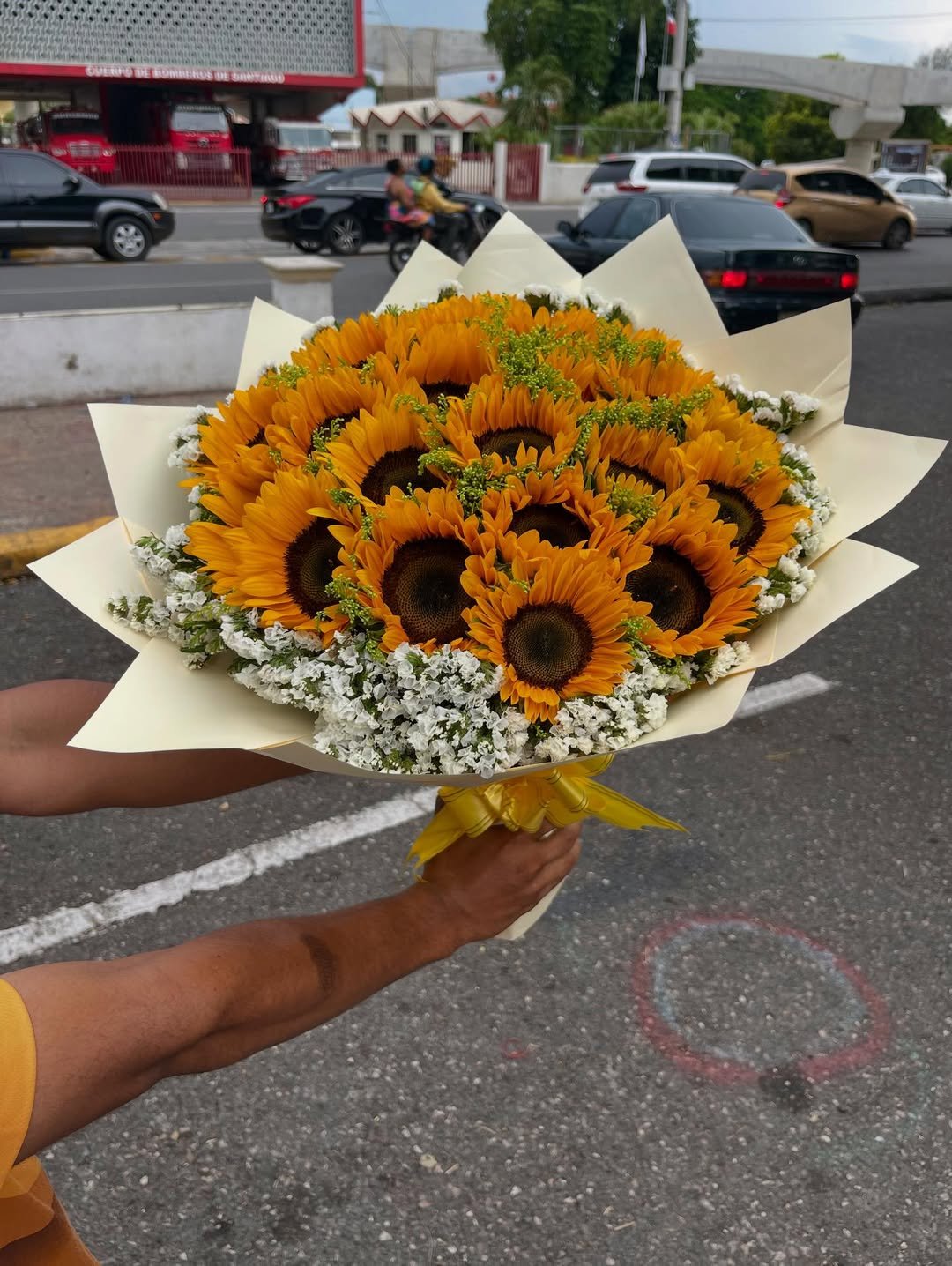 Sunflowers symbolize happiness, confidence, and positive energy. In this grand arrangement, each bloom is carefully selected and arranged to create a sense of abundance while maintaining balance and elegance. The presentation feels uplifting yet refined, suitable for both celebratory occasions and meaningful personal gestures.